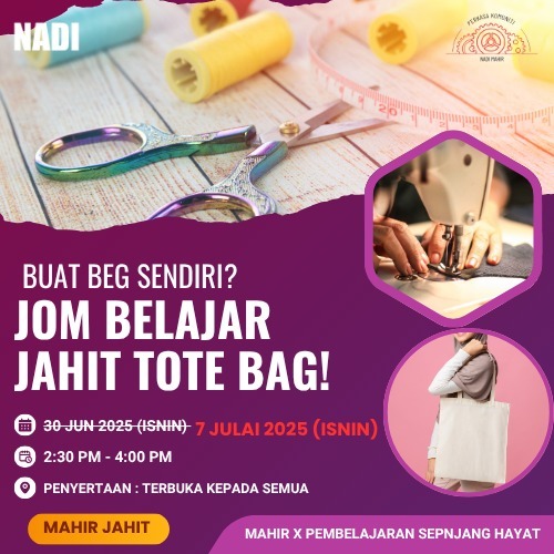 Kelas Short Learning Series (SLS) NADI Mahir Jahit : Buat Beg Sendiri? Jom Belajar Jahit Tote Bag!