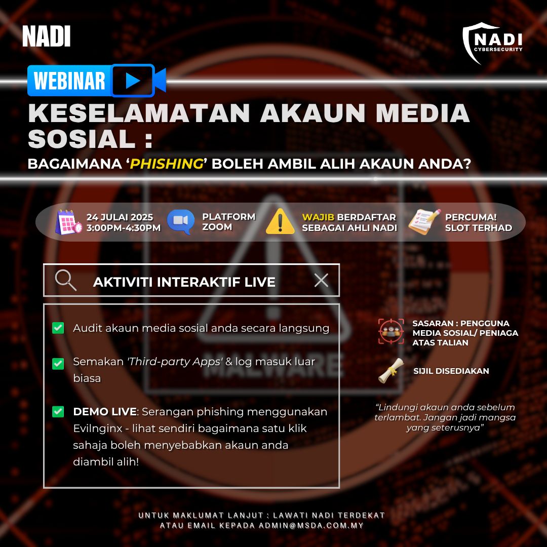 NADI – CYBERSECURITY – KESELAMATAN AKAUN MEDIA SOSIAL : Bagaimana ‘Phishing’ Boleh Ambil Alih Akaun Anda
